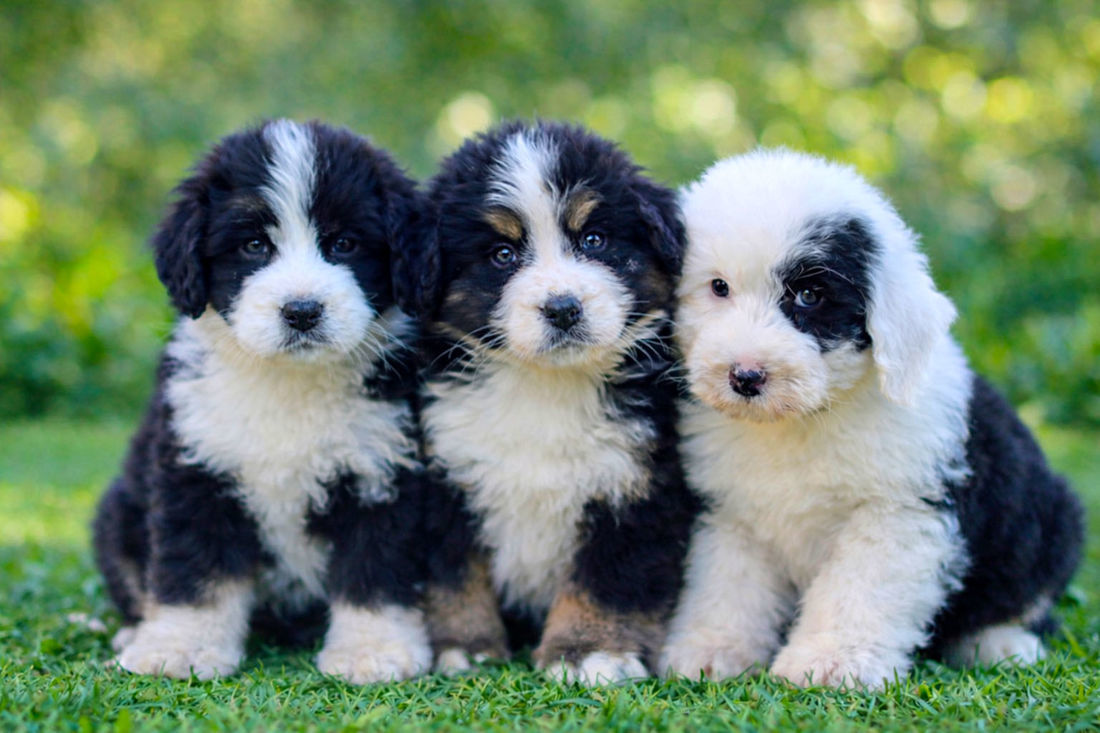 (L-R Bernedoodle female, Bernedoodle female, Sheepadoodle female)
